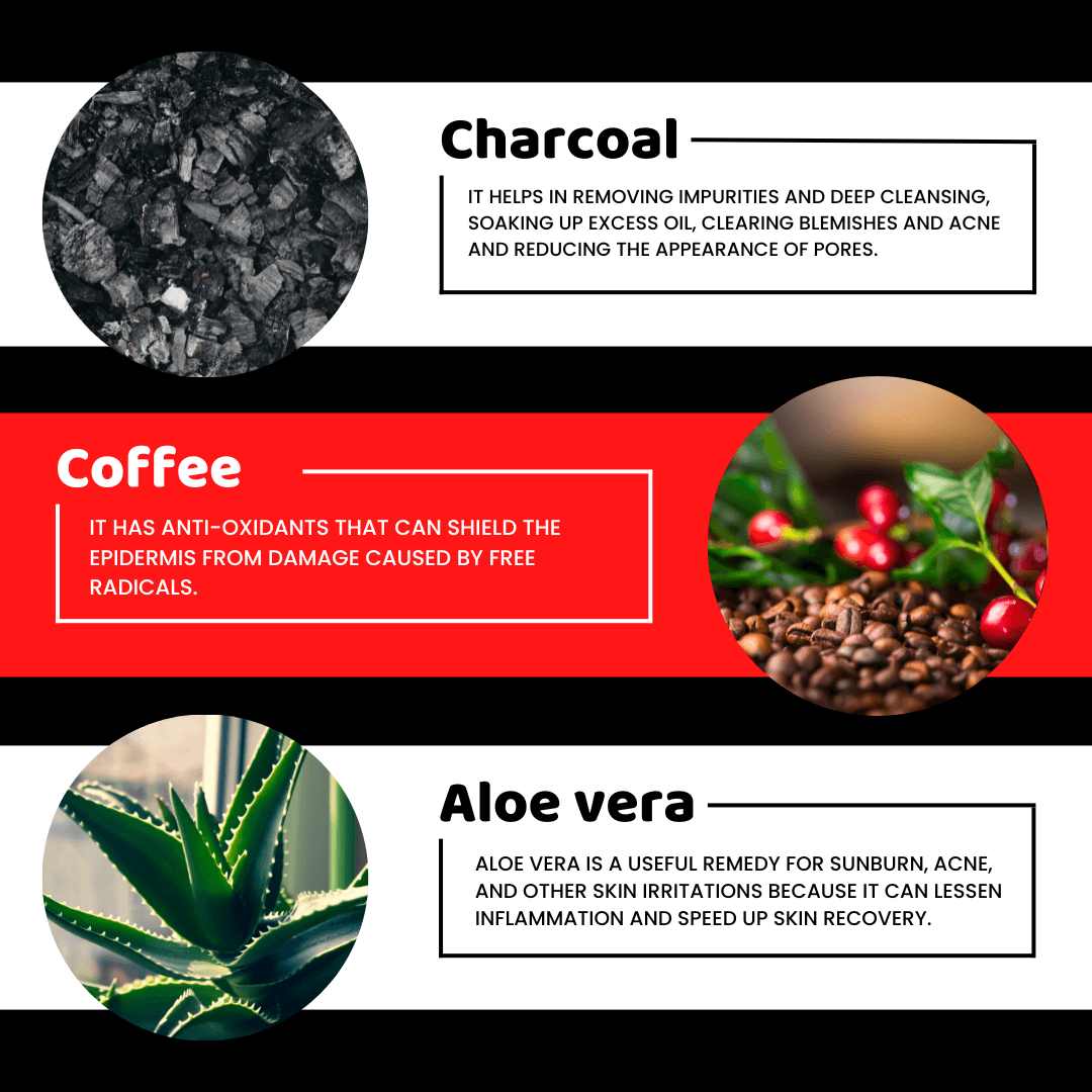 • Enriched with natural ingredients like activated charcoal, coffee, and almond, aloe vera, green tea, and rose.