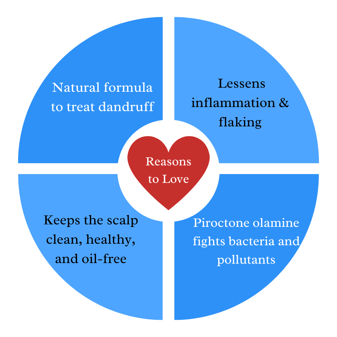 • Soothes the scalp with salicylic acid, apple cider vinegar, tea tree oil, and rosemary.