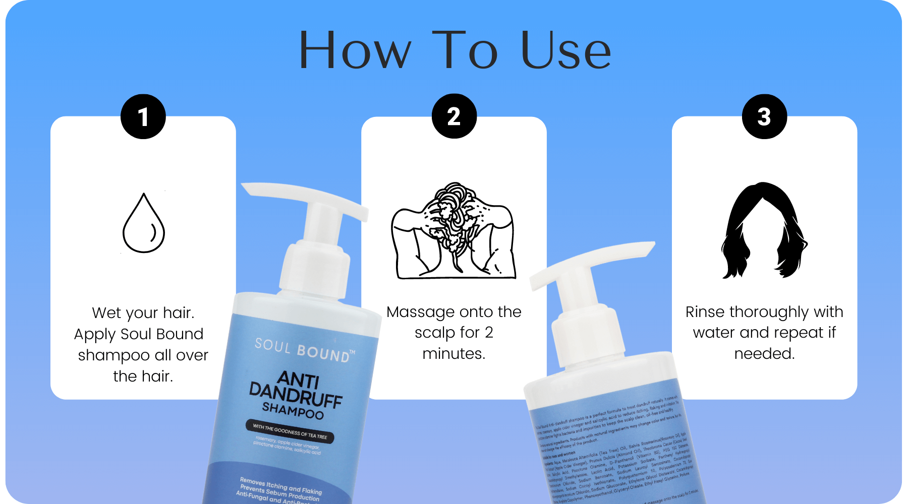 The Soul Bound Anti-Dandruff Shampoo is a natural and effective solution formulated to help alleviate the symptoms of dandruff, which can include a dry, flaky, and itchy scalp.