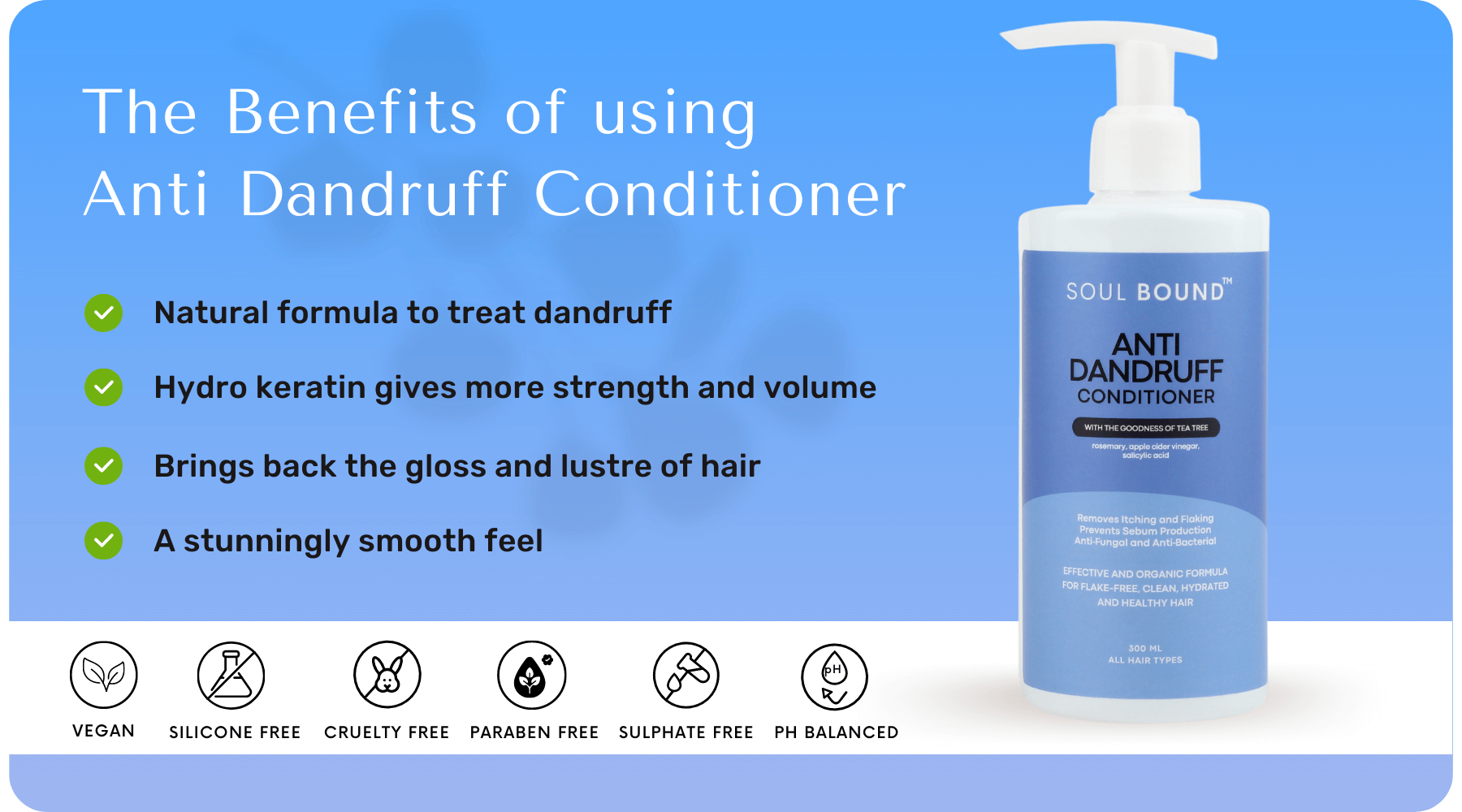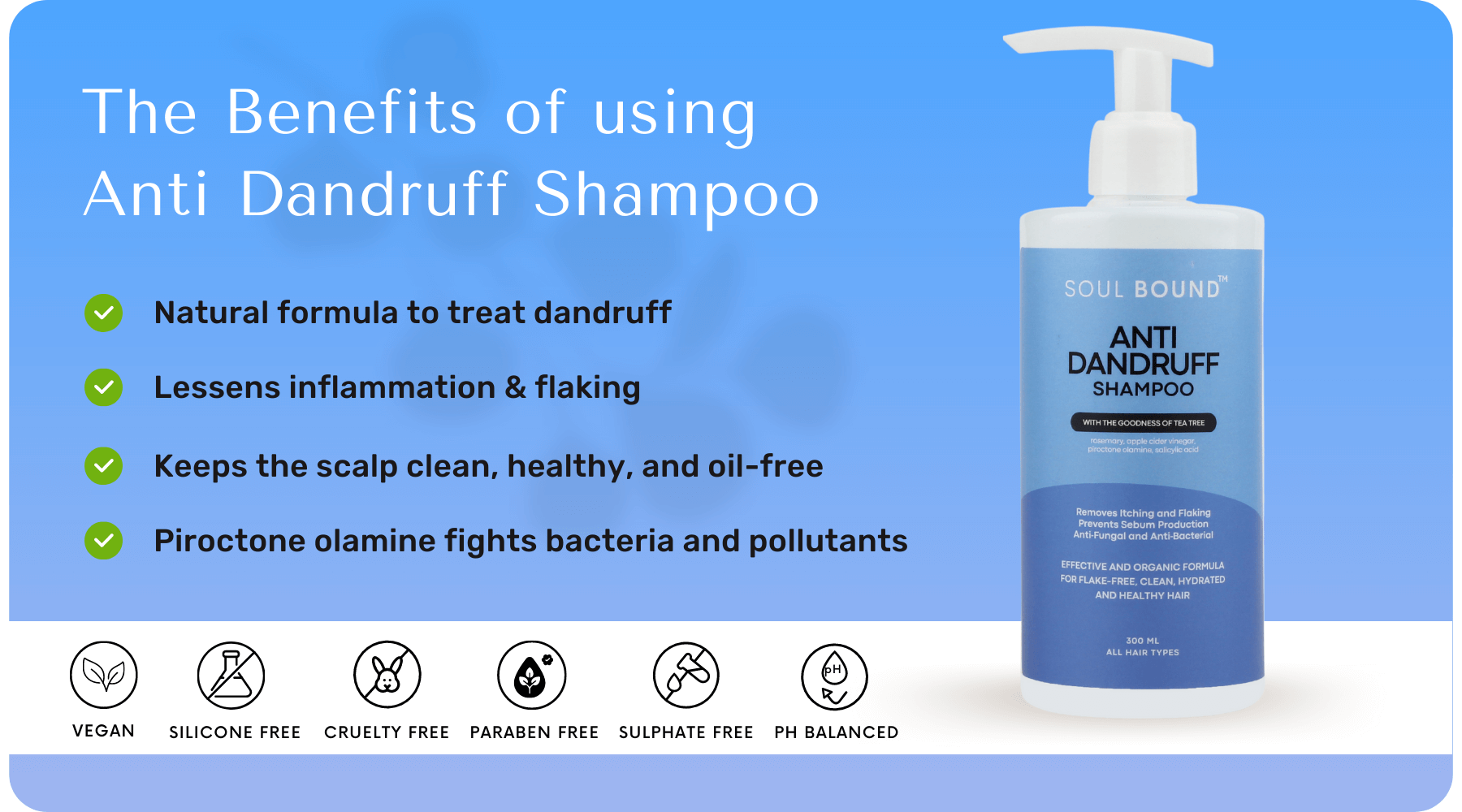 The Soul Bound Anti-Dandruff Shampoo is a natural and effective solution formulated to help alleviate the symptoms of dandruff, which can include a dry, flaky, and itchy scalp.