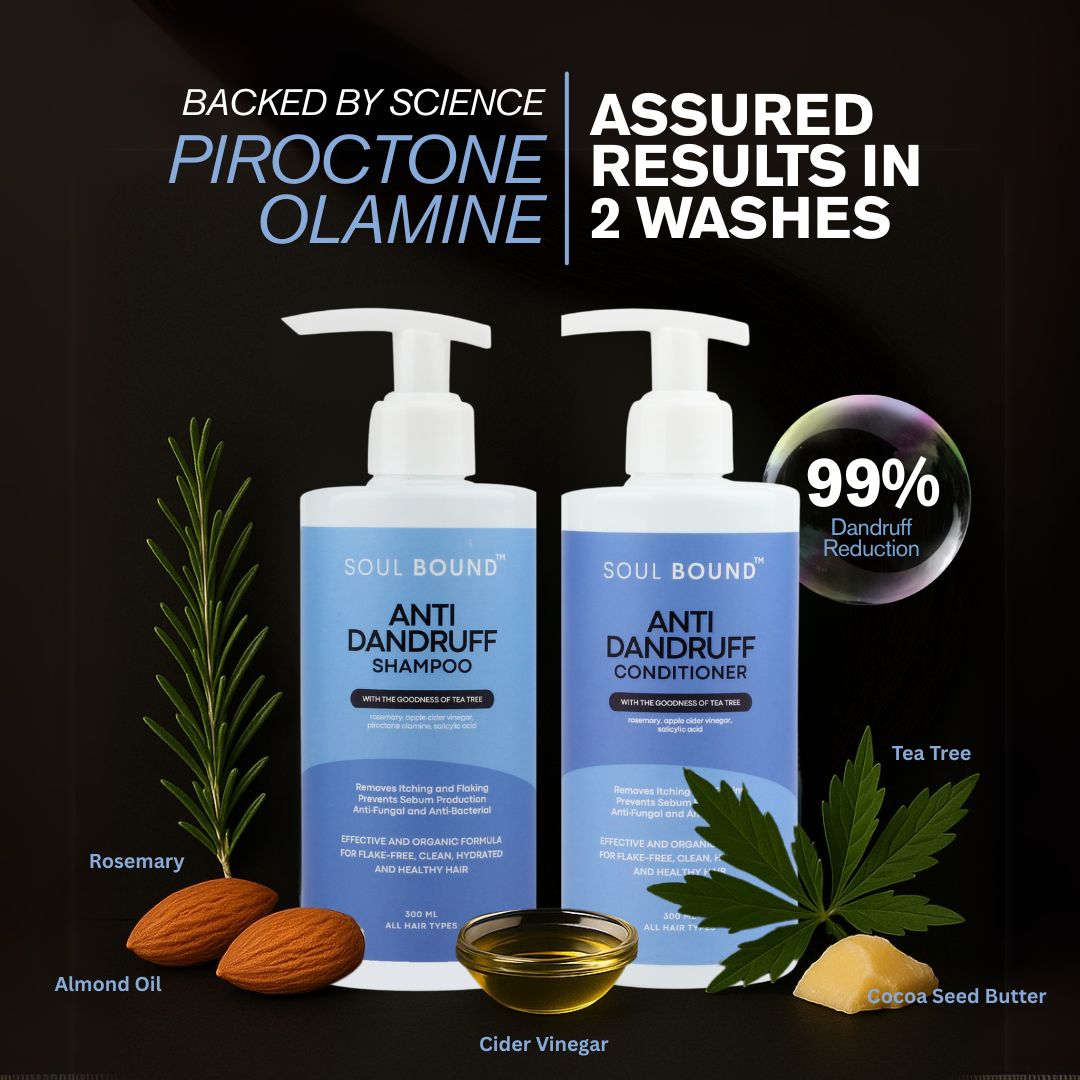 The Soul Bound Anti-Dandruff Shampoo is a natural and effective solution formulated to help alleviate the symptoms of dandruff, which can include a dry, flaky, and itchy scalp.