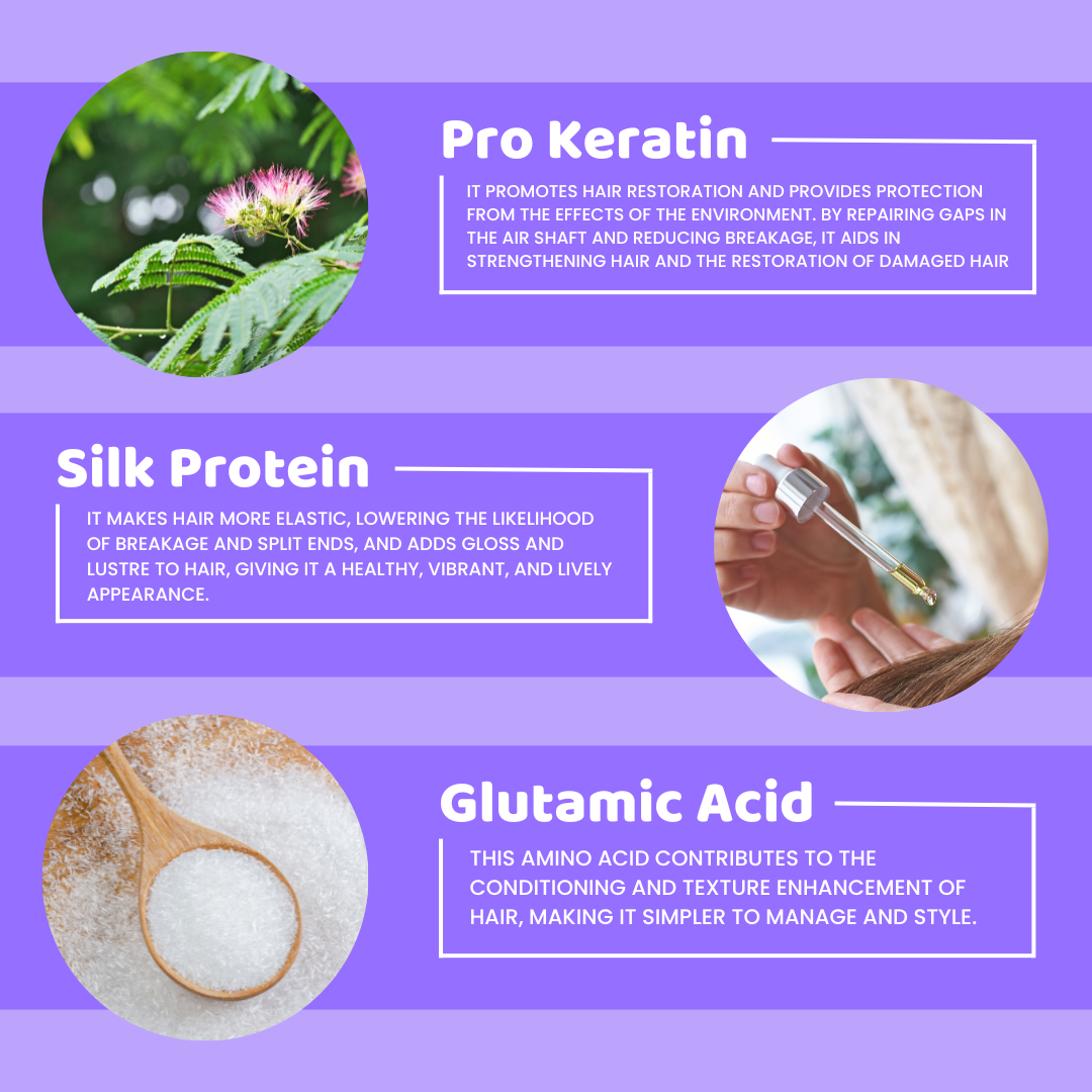 • Provides essential vitamins and proteins that hair needs, such as keratin protein and vitamin B5.