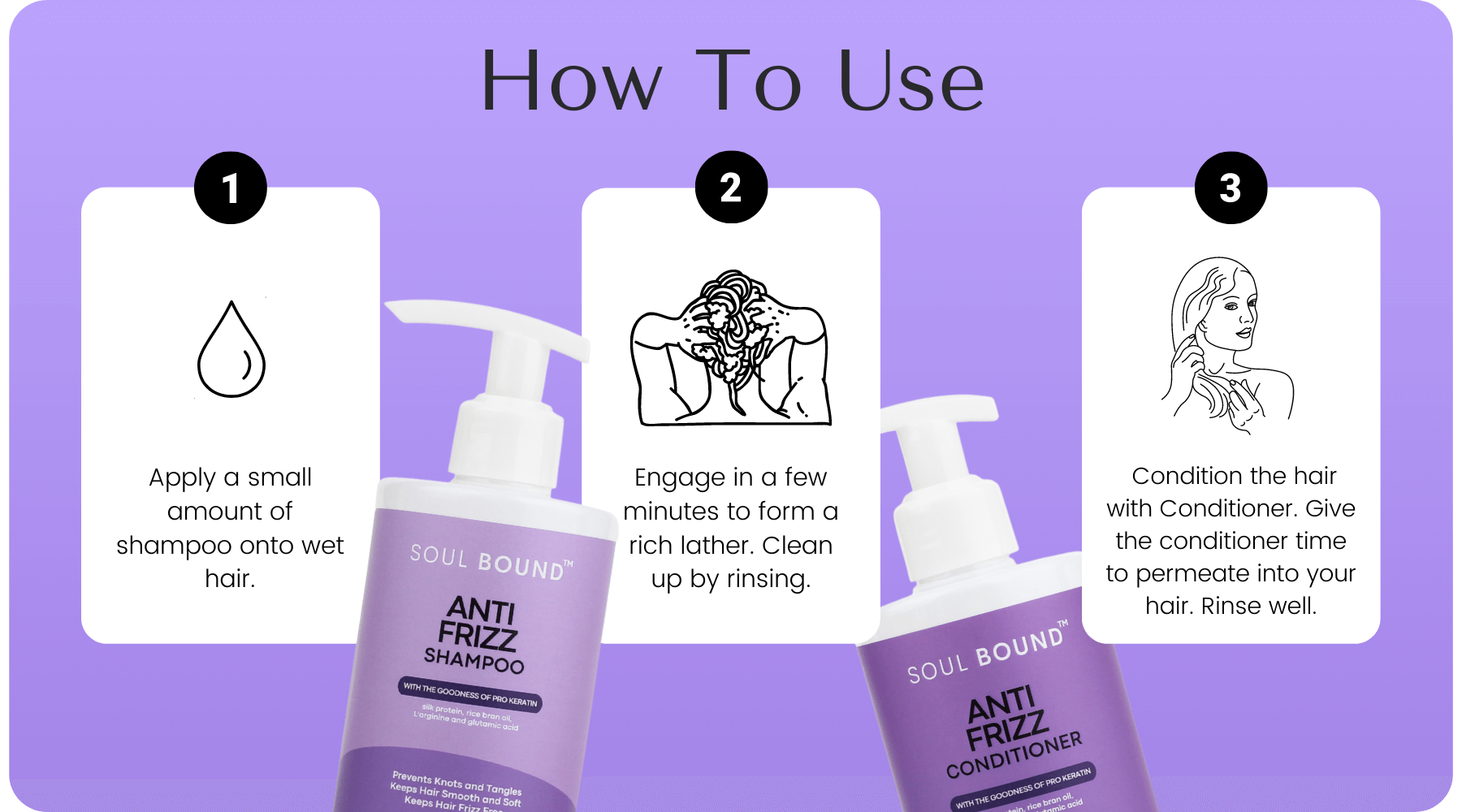 The Soul Bound Anti-Frizz Shampoo gently cleanses and nourishes hair, restoring strength and volume. Pro Keratin formula uses a unique blend of premium ingredients to help restore shine, elasticity and manageability.